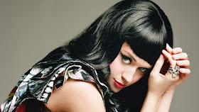 Portrait photo of Katy Perry wallpaper with blue eyes and black hair