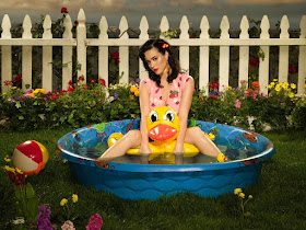 Katy Perry with blue hair and colored strapless dress and ncie necklace wallpaper California Gurls